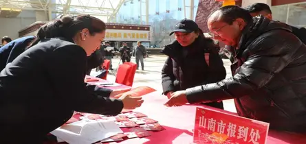参加自治区两会的山南市代表委员向大会报到